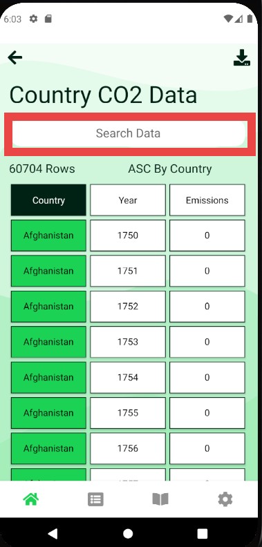 Earthlytics tables have sorting and search capability. Searching in tables involves checking for a user's specific search present in any of the table columns. Only the rows with some element matching a user's search will be displayed. No Enter click is necessary for the search - search will be triggered automatically as a user is typing.